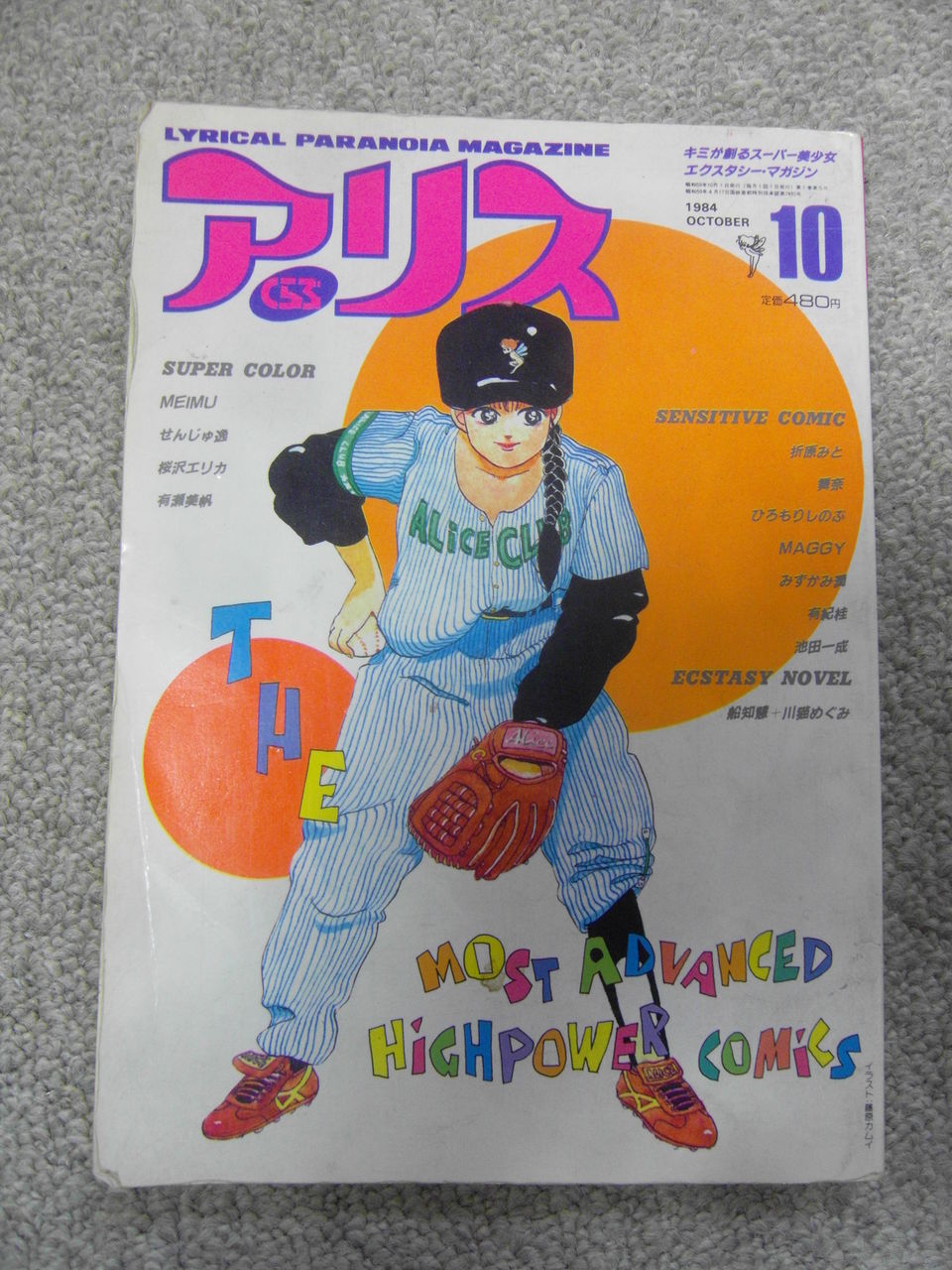 80年代漫画の世界の中でいわゆるロ◯漫画ブームというのがあったが、その流れはコミックマーケット、少年まんがブーム(ジャンプ数百万部の時代)急増した同人誌の流れなどをベースにあくまでいままでのアダルト劇画のパロディとしての小さい等身のキャラクターを利用したマンガのブームが起こる。一見それは当時規制されていなかった「それ」を表現するためではなく、文脈としての美少女キャラクターブームであったといってもよくて漫画の中の女の子キャラクターを愛でるということが理由であり、飽きた人たちは急速に解散していったことでもそれが一過性であったことがよくわかる。その舞台を利用して大塚英志が「漫画ブリッコ」という雑誌を展開し、ロ◯漫画のふりをしながら女の子漫画という女流作家ブームを内包してひとつの世界を作っていた。そのスタッフである緒方氏が途中で分派して作った女の子マンガ雑誌「アリスくらぶ」(84年ころ)。一見ロ◯漫画のように見えるが、それらの作家は使いつつも、エロはない一般コミック雑誌。桜沢エリカや岡崎京子もあとにお洒落な漫画として女の子に支持され、予算のある雑誌で書くようになっていくが、元はそちらの世界の人で、あくまで舞台として建前のロ◯であり、そこから多くの作家が育っていったのだが、この号の表紙なんかはいまでもまだ一般コミック世界では活躍をしている藤原カムイが書いている。